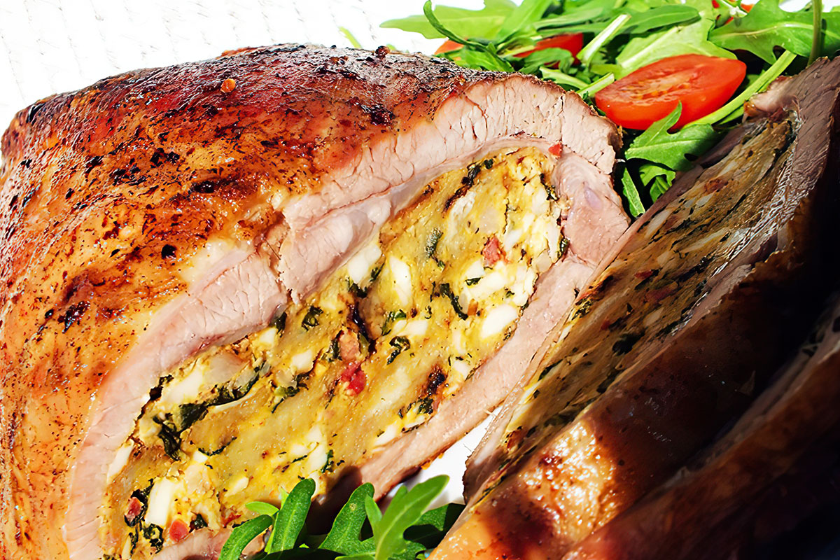 Betöltjük a dagadóba, és hústűvel összetűzzük a végét. Lazán legyen a töltelék, mert sülés közben megdagad, és kireped a hús!